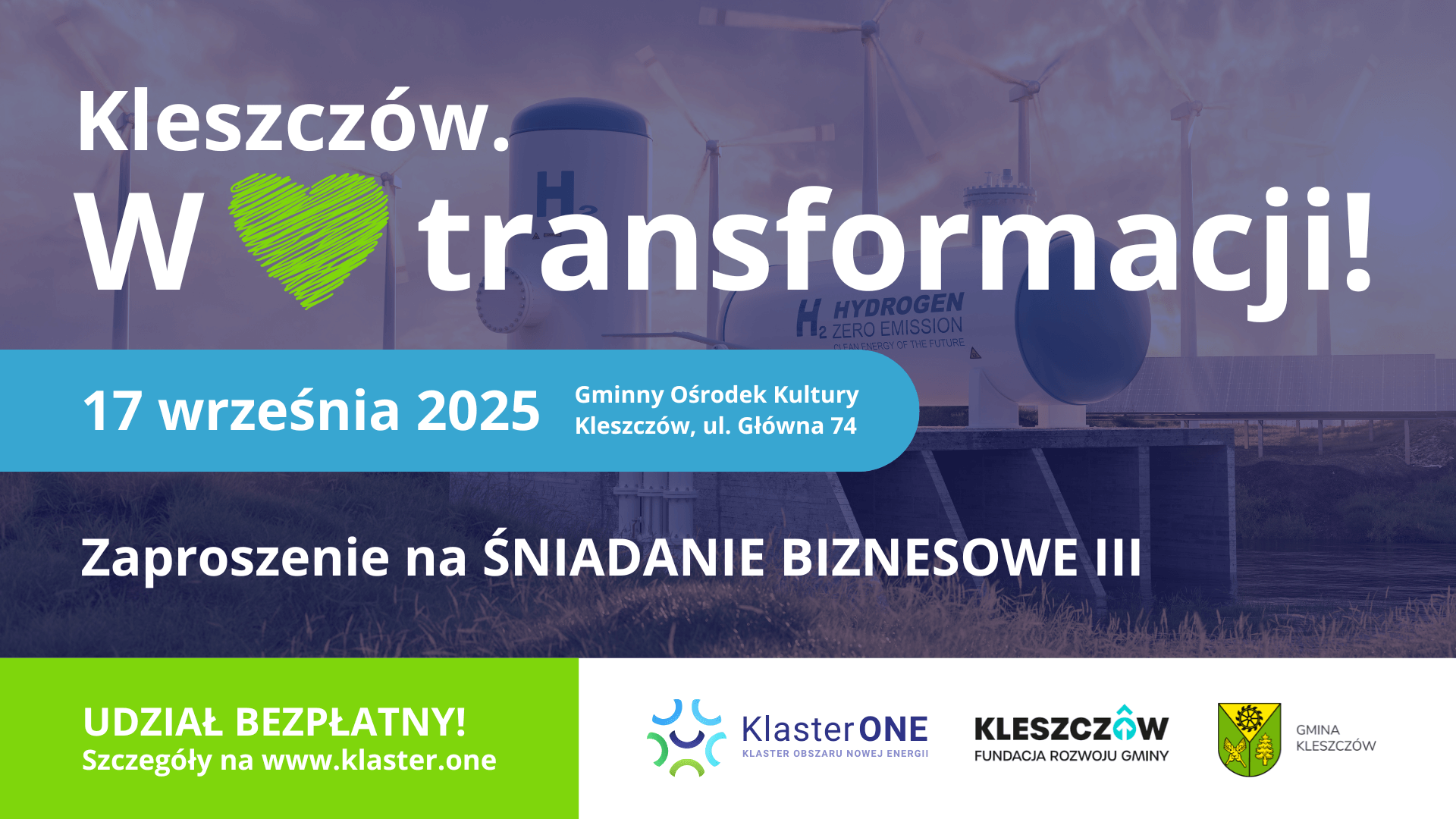 Szanowni Państwo, w imieniu organizatorów cyklu wydarzeń „Kleszczów. W 💚 transformacji!”, mamy przyjemność zaprosić Państwa na kolejne śniadanie biznesowe.